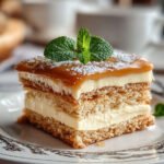 Tauchen Sie ein in die himmlische Welt des Besten Einfachen Karamell Milchmädchen Schichtkuchens Cremig, wo jede Gabel ein Fest aus seidig-süßem Karamell und zarter, sahniger Textur ist, die auf der Zunge zergeht. Dieser Kuchen ist nicht nur ein Dessert; er ist eine Umarmung für die Seele, ein süßer Traum, der wahr wird und jeden Moment zu etwas Besonderem macht.