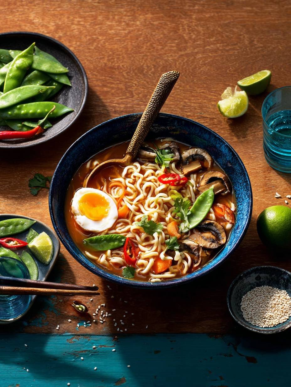 Himmlisches Ramen mit Ei & frischem Gemüse.