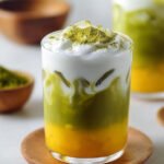 Der Schlüssel zu den wunderschön geschichteten Komponenten dieses Getränks liegt im langsamen und vorsichtigen Eingießen der Flüssigkeiten, wie in den Rezeptanweisungen erwähnt. Nachdem Sie das Mangopüree und die Eiswürfel im Glas haben, gießen Sie die Milch behutsam über die Eiswürfel, um eine klare Trennung zu erzielen. Wenn Sie den zubereiteten Matcha hinzufügen, machen Sie es ähnlich: Gießen Sie ihn langsam über die Rückseite eines Löffels oder direkt über die Eiswürfel. Die Eiswürfel helfen dabei, die Flüssigkeiten zu verlangsamen und ein Vermischen der Schichten zu verhindern, sodass Ihr Getränk visuell ansprechend bleibt.