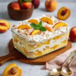 Dieses unvergleichlich leckere Pfirsich Tiramisu ohne Backen ist der Inbegriff sommerlicher Leichtigkeit und Eleganz. Es vereint die cremige Sanftheit der Mascarpone mit der saftigen Süße sonnengereifter Pfirsiche und der zarten Textur der getränkten Löffelbiskuits zu einem himmlischen Geschmackserlebnis. Die feine Zimtnote und die frische Minze runden das Dessert perfekt ab und verleihen ihm eine zusätzliche Raffinesse. Einfach zuzubereiten und ohne Backofen kreiert, ist es die ideale Wahl für eine süße Auszeit an warmen Tagen. Zögern Sie nicht länger und verwöhnen Sie Ihre Liebsten mit diesem unwiderstehlichen Dessert – Ihre Geschmacksknospen werden es Ihnen danken!