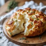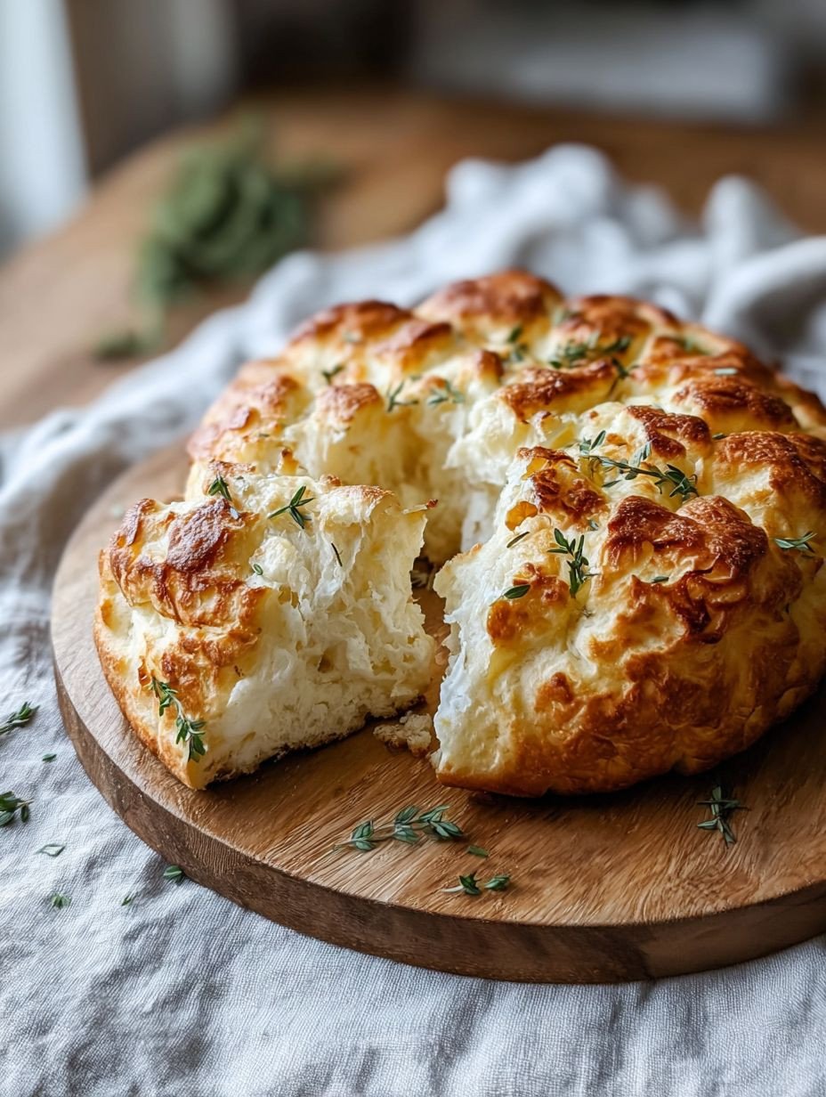 Dieses Hüttenkäse Wolkenbrot bietet eine bemerkenswert luftige und zarte Textur, die an eine Wolke erinnert. Es besitzt eine leicht goldbraune Kruste und ein unglaublich weiches Inneres, das auf der Zunge zergeht. Der milde, leicht salzige Geschmack des Hüttenkäses wird durch frische Kräuter, wie den abgebildeten Thymian, harmonisch ergänzt. Gebacken im Ofen, entwickelt es eine leichte Süße und eine angenehme Saftigkeit, die es zu einer vielseitigen Beilage oder einem leichten Snack macht.
