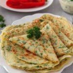 Diese zarten Kräuter-Käse Blini sind eine wunderbare Ergänzung für jede Sommerparty oder als leichte Hauptspeise. Die dünnen Pfannkuchen werden mit frischen Kräutern wie Dill und Petersilie verfeinert und erhalten durch geriebenen Käse eine angenehm herzhafte Note. Leicht goldbraun in der Pfanne gebacken, bieten sie eine weiche, geschmeidige Textur und einen ausgewogenen, aromatischen Geschmack, der durch die frischen Kräuter belebt wird. Sie lassen sich hervorragend vorbereiten und sind vielseitig kombinierbar.