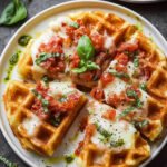 Diese herzhaften Waffeln bieten eine köstliche Kombination aus knuspriger Textur und klassischen, italienisch inspirierten Aromen. Goldbraune Waffeln dienen als einzigartige Basis, belegt mit geschmolzenem Mozzarella, frischen gewürfelten Tomaten und aromatischem Basilikum. Ein Schuss Olivenöl verstärkt den lebendigen Geschmack und schafft ein sättigendes und vielseitiges Gericht, das sich ideal für eine schnelle Mahlzeit oder einen besonderen Snack eignet.