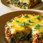 Dieser herzhafte Auflauf vereint die nussigen Aromen von Quinoa und Linsen mit frischem, zartem Spinat. Die Schichten werden harmonisch in einer Auflaufform gebacken und mit einer goldbraunen Käsekruste vollendet. Das Gericht bietet eine ausgewogene Kombination aus erdigen Geschmacksnoten und einer angenehm cremigen Textur, ideal als vollwertige Mahlzeit.