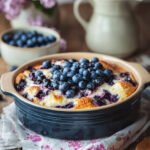 Dieser Blaubeer-Hüttenkäse-Frühstücksauflauf bietet eine harmonische Kombination aus cremiger Textur und der fruchtigen Süße von frischen Blaubeeren. Der Auflauf wird im Ofen gebacken, wodurch er eine leicht goldene Oberfläche und ein weiches, saftiges Inneres erhält. Er ist eine nahrhafte und sättigende Option für einen genussvollen Start in den Tag, der sowohl warm als auch kalt schmeckt.
