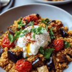 Stell dir vor: Der Duft von gerösteter Aubergine, der süße Hauch von Tomaten, die erdige Wärme von Bulgur und obendrauf ein perfekt pochiertes Ei, dessen cremiges Eigelb wie flüssiges Gold zerläuft. Ein Traum für die Sinne!